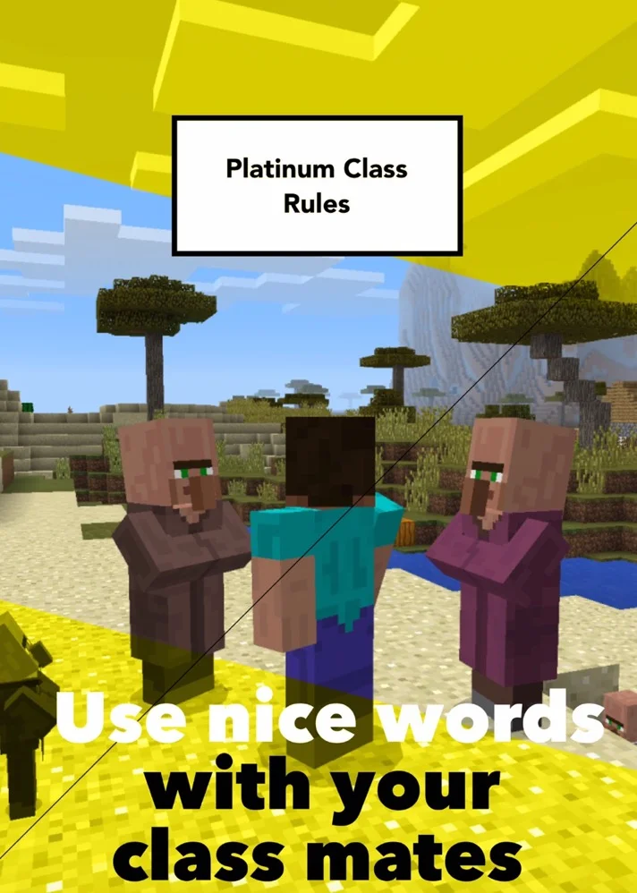Students can use their special interests to create classroom posters that help them and their peers to understand and be reminded of classroom expectations, such as the example below that a student made by taking a screenshot in Minecraft and importing it into poster making app Phoster.