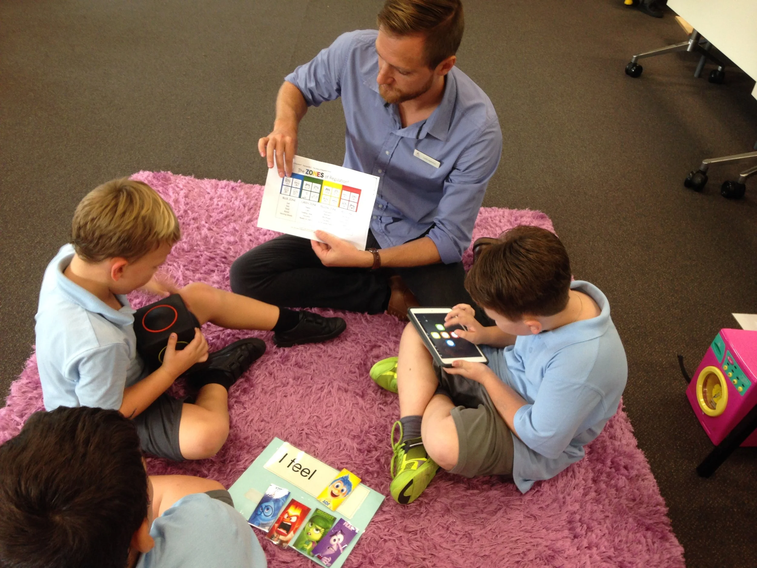 One of our core goals at school is to teach skills relating to emotional regulation. Skoog has been a fantastic tool to help us towards this goal lately, as we have been associating the colours of Skoog to the colours of the Zones of Regulation program (Blue = Sad, Green = Happy, Yellow = Excited or Anxious, Red = Upset or Angry). Students press the coloured side on Skoog that relates to an emotion being talked about at the time, and then they perform that colour in a manner that expresses the emotion, or play along to a song that sounds like that emotion. For example, when talking about a Happy emotion students will play the Green note on Skoog in time to a happy song. When talking about a Sad emotion, students play the Blue note on Skoog in a manner that sounds sad and forlorn. In this way, we are relating emotions to a greater palette of sensory expression.